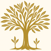 Gold-colored tree with leaves on a light background.